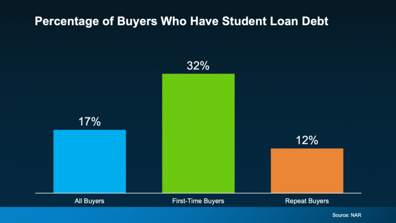 And the data backs this up. An annual report from the National Association of Realtors (NAR), shows that 32% of first-time buyers had student loan debt (see graph below):